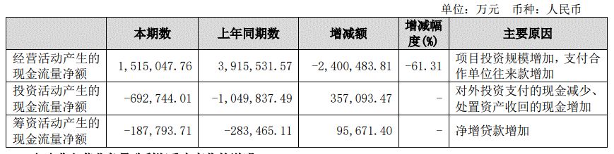同时如下图,筹资活动产生的现金流净额,由-28.35亿元,变为-18.78亿元。主要原因是净增贷款增加。