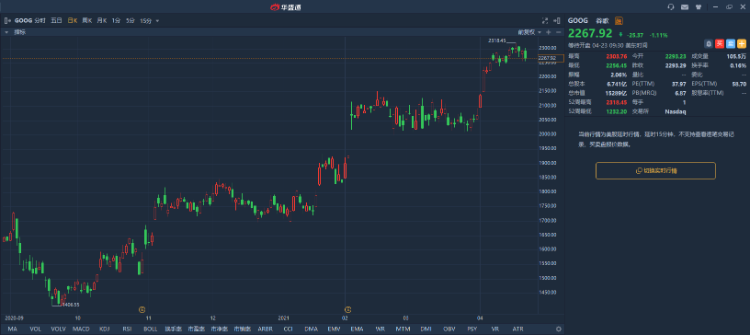 谷歌今年迄今为止的股价上涨了近30%,4月19日创出了2304.09美元的近期纪录高点。目前,这家总部位于加州山景城的互联网巨头市值达到了1.54万亿美元,在美股市场中排名第四。