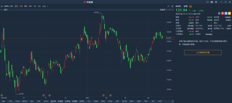 苹果公司上个季度发布了史上最好的收益报告,而本季度的财报将会在4月28日周三美股盘后公布。市场普遍预期苹果第二财季美股收益为0.98美元,较去年同期增长近54%,但较上季度的1.68美元大幅下降。此外,预计收入将同比增长31%,至767亿美元,这一数据较上季度的1114亿美元也环比大跌。