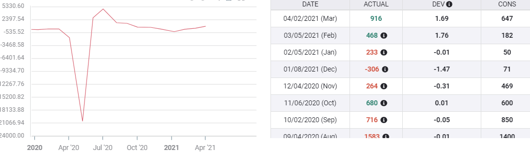 而在过去的一季度中,3月份的企业招聘人数几乎是1月份的四倍,达到91.6万人,是第三季度封锁期间的2.5倍。公司重新雇佣了去年三四月被解雇的2236.2万员工中的62%,有840万人仍处于失业状态。