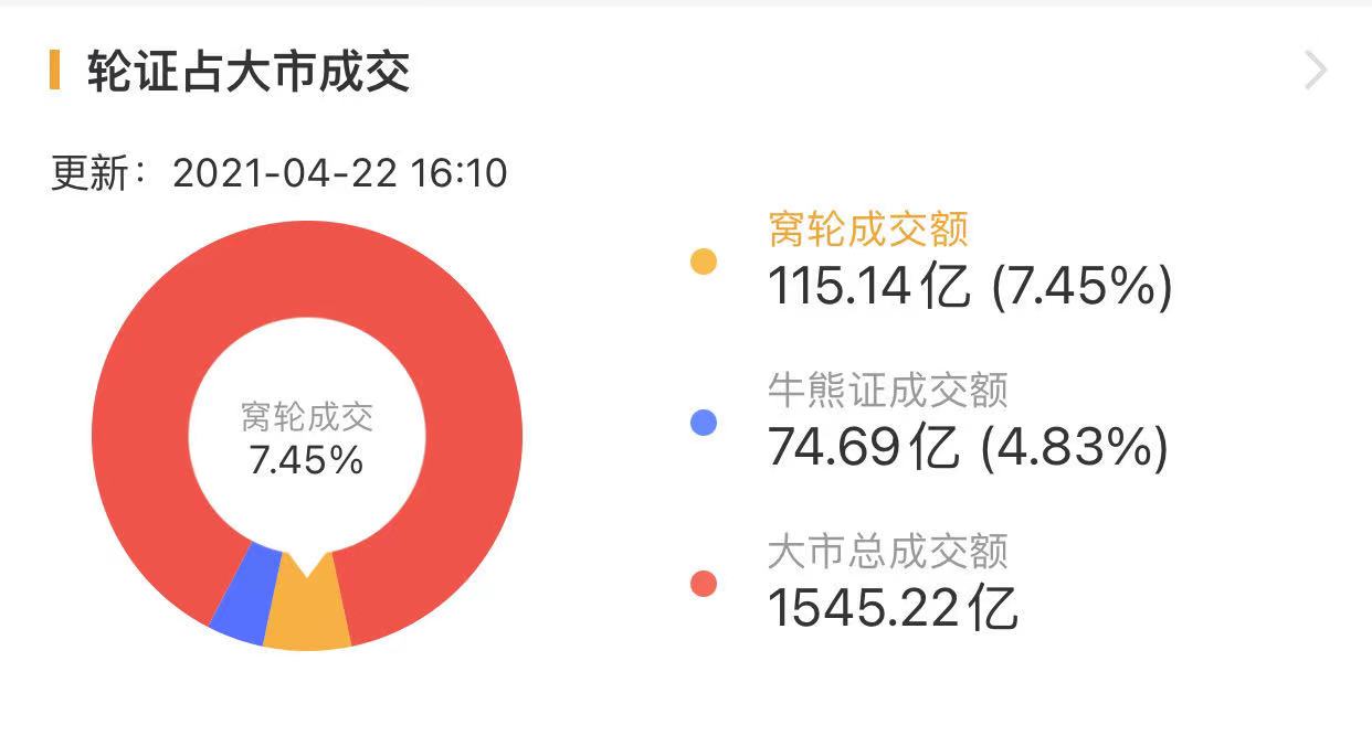 其中,窝轮总成交115.14亿港元,牛熊证总成交74.69亿港元。