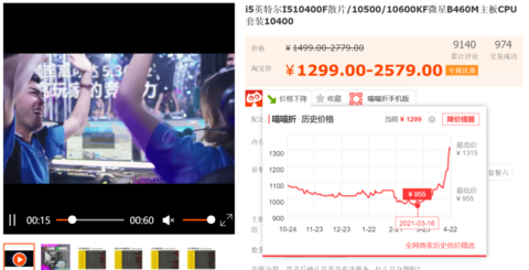 京东平台上,酷睿i5-10400F上个月最低价999元,目前售价1259元;酷睿i5-10400最低价1249元,现已涨价到1399元;酷睿i5-10600KF从1349元上涨到1599元。11代的酷睿i5-11600KF上涨100元,部分酷睿i7产品也均上涨200元左右。