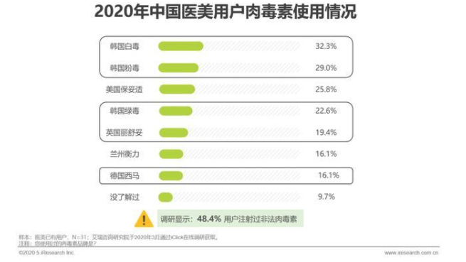 从一些非正规渠道的调研得知,韩国白毒,也就是letybo,是目前使用最广泛的水货产品,物美价廉,而且有品牌保障,是整容大国韩国市占率最高的产品。