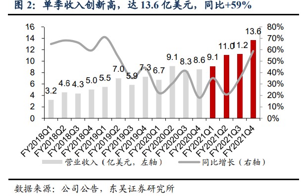 好未来方面,2021财年Q4(截至2021年2月28日止三个月)的单季度收入创新高,约计13.6亿美元,相较上年同期的8.6亿美元,增幅达58.9%,整体表现优于预期(指引预期为11.75-12亿美元)。