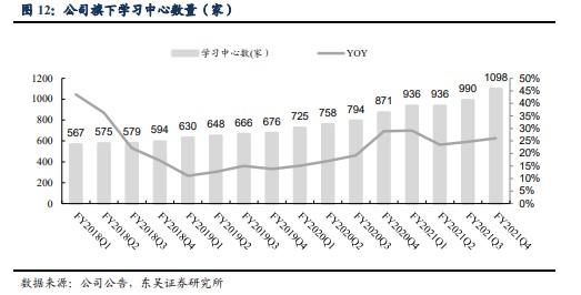 好未来:截至2021财年末,公司共有1098家网点学习中心,较去年增加了227家。