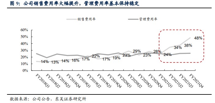 而好未来本季的销售费用达到了6.6亿美元,再创新高,同比增长了171.6%,销售费用率为48.5%,同比增长20.1%。好未来在财报中说明,销售费用增加主要是因为开展了更多营销推广活动,以扩大用户基础,提升品牌;销售人员薪资亦有所提升,以支持更多项目与服务。