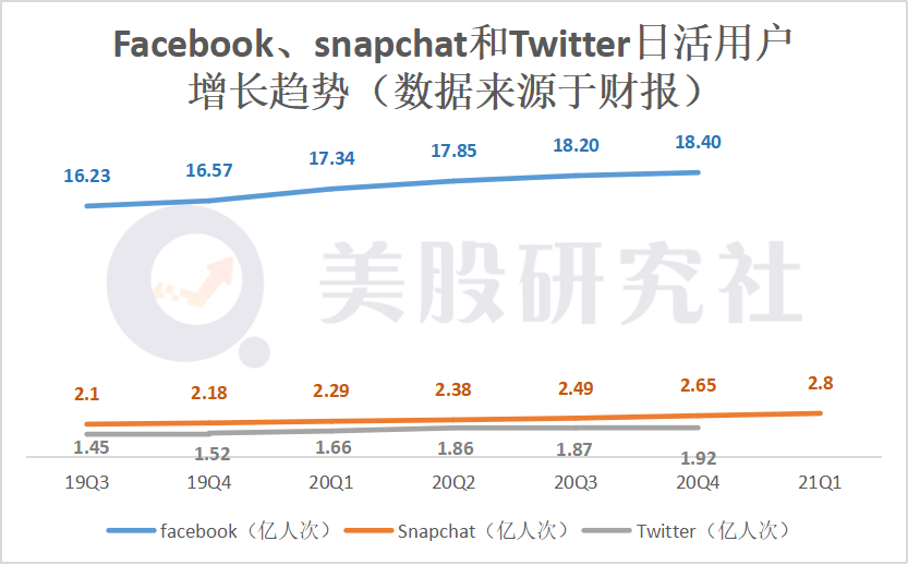 和其他的社交平台比较来看,Snap的日活用户与巨头Facebook还有一定差距,但作为一家处于成长阶段的公司,Snap的用户数据情况还是好于Twitter的。在过去的几个季度里,Snap的日活用户都在两亿以上,Twitter的日活用户并没有达到2亿,Snap还是有自己的独特的优势的。