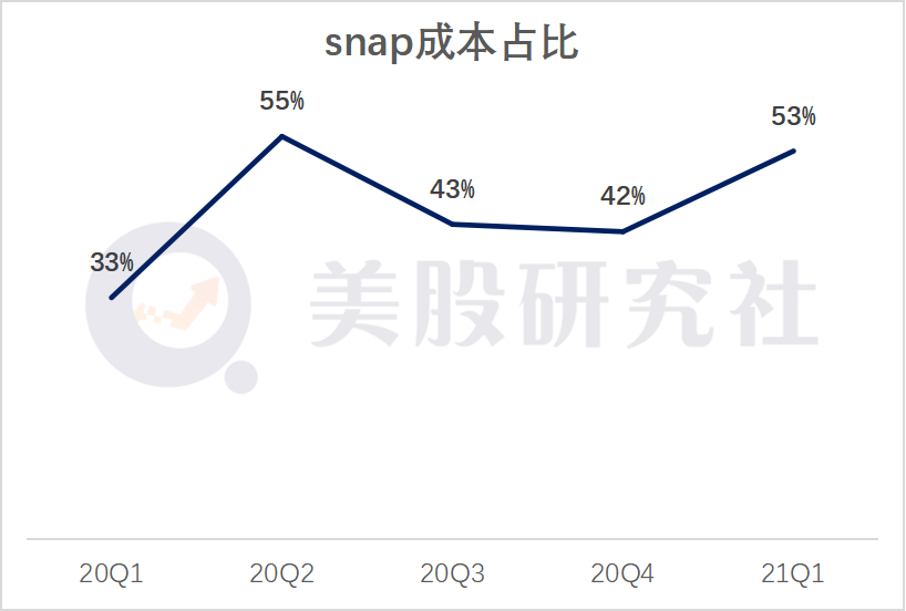 毕竟这一季度,Snap好不容易实现了第一个季度的正向现金流为,1.26亿美元,同比增长了1.31亿美元。从成本占比情况来看,Snap仍然面临成本占比巨大的问题,一旦未来国际业务的拓展,影响了公司的变现能力,还是会影响投资者的信心。