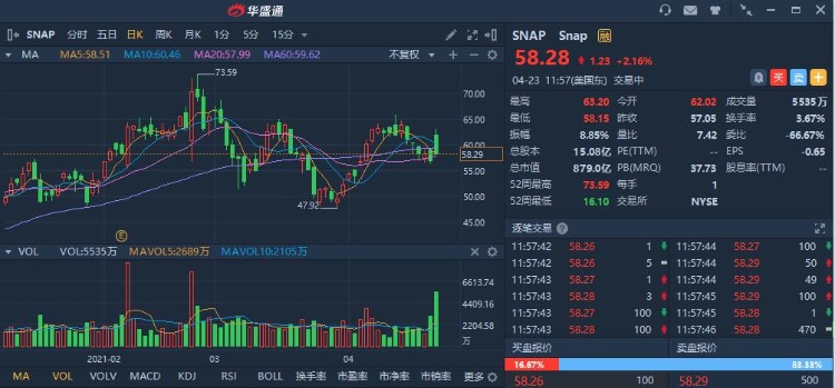 北京时间4月22日,Snap发布了新一季度财报,财报显示营收7.7亿美元,同比增长66%,日活用户达2.8亿,同比增长22%,净亏损2.87亿元,均超市场预期。