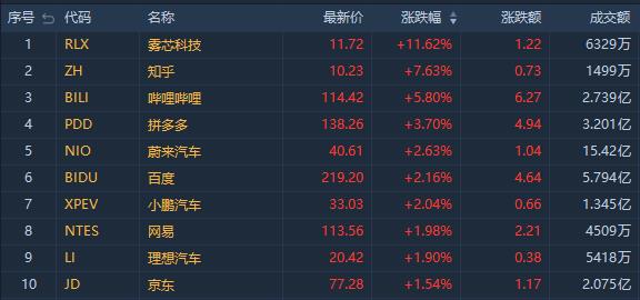 华盛资讯4月23日讯,热门中概股集体上涨,雾芯科技涨超11%,知乎涨超7&,哔哩哔哩涨近6%,拼多多涨近4%。