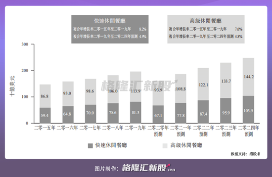 香港市场未来增长缓慢。根据欧睿的资料,香港快速休闲餐厅市场按收益计算,预测将由二零一九年的229亿港元按复合年增长率约2.1%增加至二零二四年的254亿港元。