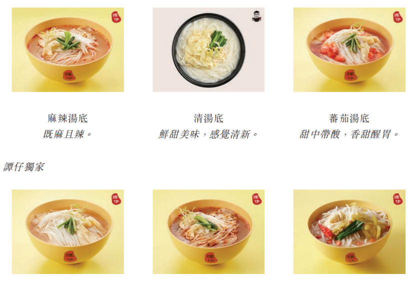 招股书显示,谭仔国际是一家以米线为重心的连锁餐厅营运商,所有餐厅均以两个自家品牌(即谭仔及三哥)为自营。谭仔和三哥品牌米线源自改良过的云南过桥米线,在发展中受到了中国西南部菜式的启发和融合,需要几十余种食材搭配混合,包括各种肉类、肉丸、蔬菜、菌菇及豆制品等。此外还有6种汤底可供选择,独创的将辣度分为10级。其招牌汤底(如麻辣汤底、煳辣汤底等)及招牌菜式(如土匪鸡翼等)均成为顾客至爱的美食。
