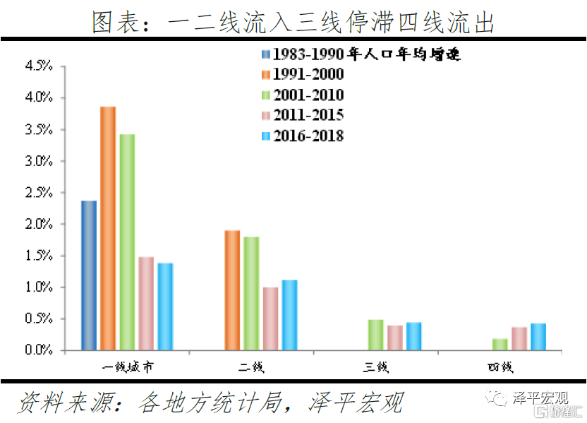 一二线住房市值高主要源于人口长期集聚下的人地严重错配和货币长期超发,房价明显较高。第一,人口长期大量向一二线核心城市集聚。1990-2018年,一线城市人口占比从2.8%增至5.3%,二线城市人口占比从16.1%增至20.5%,三四线城市人口占比从81%降至74.2%。人口向一二线集聚的背后,是经济的集聚。该时期,一线城市GDP占比从9.4%增至12.2%,二线城市GDP占比从23.8%增至33.7%,三四线城市GDP占比从66.8%降至54.1%。2018年,一线、二线、三线、四线城市经济-人口比值分别为2.3、1.6、1.0、0.6,这预示着四线城市人口将继续大幅流出,一二线城市人口将继续集聚。此外,核心城市优质公共资源高度富集,中国特有户籍制度使得公共资源与户口挂钩,而户口基本与房产挂钩的情况更加促进全国高收入人群向核心城市集聚。第二,人地严重错配,一二线城市土地供给严重不足。根据住建部统计,2006-2016年中国城区人口1000万人以上的城市城区人口增量占比16.9%,而建设用地增量占比仅3.5%。此外,大城市住宅用地被严格控制,2009-2018年一线城市住宅类用地供应面积从2585万平方米降至1426万平方米,占100个大中城市住宅类用地比例从8.0%波动降至4.5%;二线城市住宅类用地比例从45.3%波动下降至43.2%;而三线城市从39.8%波动上升至51.3%。第三,货币超发使得广义货币增速多高于名义GDP增长,尤其刺激供给短缺、优质公共资源富集的一二线城市房地产价格快速上涨。1998年以来中国广义货币供应量M2年均增速15.2%,高于名义GDP年均增速的12.5%,全国新建商品住房销售均价年均增速达7.9%,低于同期M2增速7个百分点,而一线城市房价基本与M2增速持平。