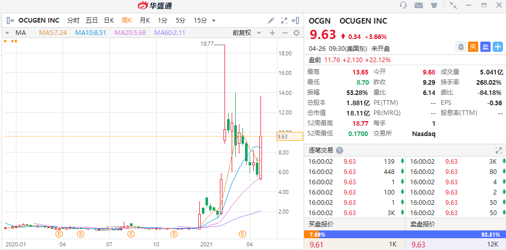 另外,Ocugen(OCGN)盘前涨超22%,此前宣布,已与专注于医疗保健的机构投资者达成最终协议,将以每股10美元的收购价格,在注册的直接发行中出售总计1000万股普通股。