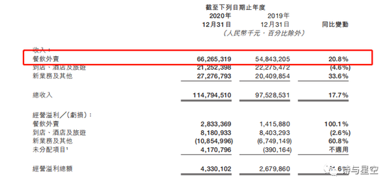 2020年年报显示,疫情并没有阻挡住外卖行业的高速发展,公司营收高达1148亿元,增幅近18%(其中餐饮业务增幅20.8%);净利润47亿元,超过上年同期22亿的两倍多,其中经营利润(剔除掉公允价值变动等非经常性损益)增幅61.6%。