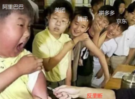 继阿里巴巴被罚款182亿人民币之后,美团也因涉嫌“二选一”的垄断行为被立案调查。网友们纷纷开启了吃瓜模式,猜想下一个会是谁。于是腾讯、拼多多、京东等巨头纷纷躺枪,网友更是祭出了神图:
