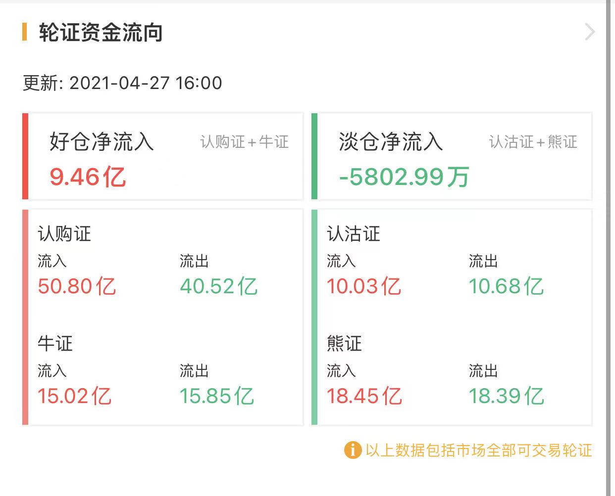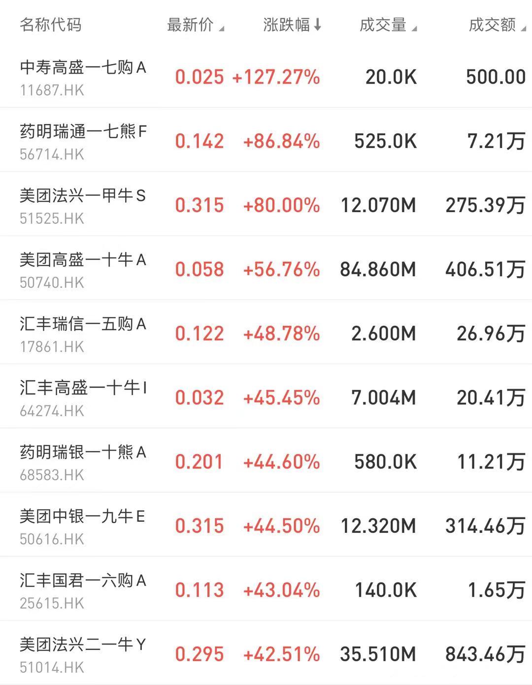 其中,窝轮总成交114.19亿港元,牛熊证总成交71.86亿港元。