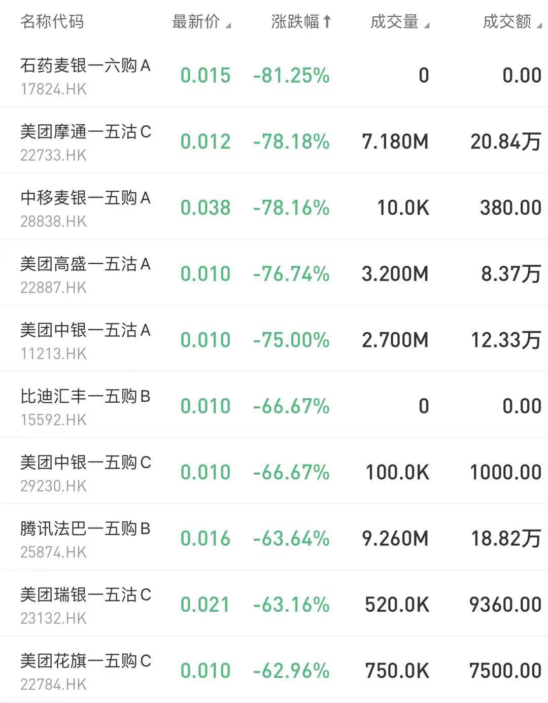 在今日跌幅榜中,石药麦银—六购A跌81.25%;美团摩通—五沽C跌78.18%。