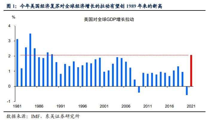 从基本面来看,美国当前不仅消费在复苏,往后投资也要起来。得益于超强的财政刺激,2021 年美国经济增长有望拉动球经济增长 2 个百分点,为 1989 年以来的新高。根据亚特兰大联储的最新预测,今年一季度美国 GDP 增速有望达到 8.3%,其中私人消费对 GDP 的拉动达到了 7.1 个百分点,可见当前的美国经济复苏主要依赖消费。