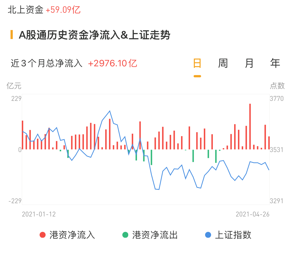 北上资金今日净流入59.09亿元,前一交易日净流入超54亿元。