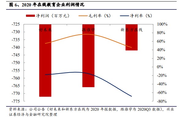 在线教育的认知度迅速拉升的同时,在线教育也收到了颇多批判和诟病,低价获客却水分超标,信息轰炸、电话骚扰、营销泛滥、制造恐慌、诱导消费、虚假宣传、霸王条款、退费难,这些负面标签也成了在线教育绕不过去的问题,“低价课成电话销售鱼钩”、“虚假宣传”只是在线教育教学与营销失衡的冰山一角。另一方面更让人咋舌的是,在线教育行业目前却普遍处于亏损之中,上市公司如好未来、跟谁学、新东方在线 2020 均处于亏损状态。