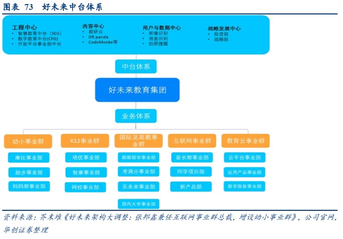 如国内K12教育双龙头之一的好未来,极具竞争力的“小前台大中台”体系,保证了教研和输出能力,目前在三四线城市还有较大的下沉空间,作为业内首个转型平台战略的企业,其先发优势是未来竞争的护城河。