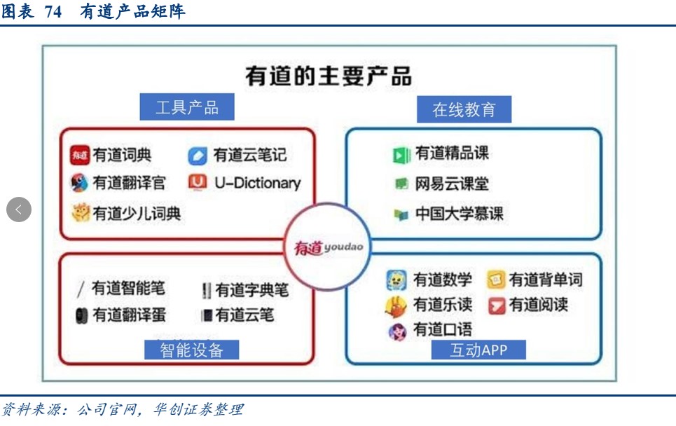 接着不得不提后起之秀网易有道,不仅拥有有道词典、有道翻译官、有道云笔记等十多个学习产品软件,在2020年有道精品课提出“聚焦中学”的战略后迅速搭建起分层教学体系,目前已形成了一个工具+内容+硬件的全产品矩阵,各产品间相互赋能和引流。同时,有道也是在线教育头部企业中唯一一个生产学习型硬件的公司(网易有道词典笔),其技术壁垒一旦形成,其他企业很难追赶其先发优势。