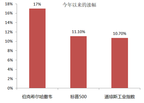 今年以来,伯克希尔哈撒韦公司给予投资者丰厚回报。截至4月26日收盘,伯克希尔哈撒韦公司本年涨幅已达到17%,股价在4月创下历史新高。与此同时,标普500和道琼斯工业指数年初至今涨幅均超过10%。