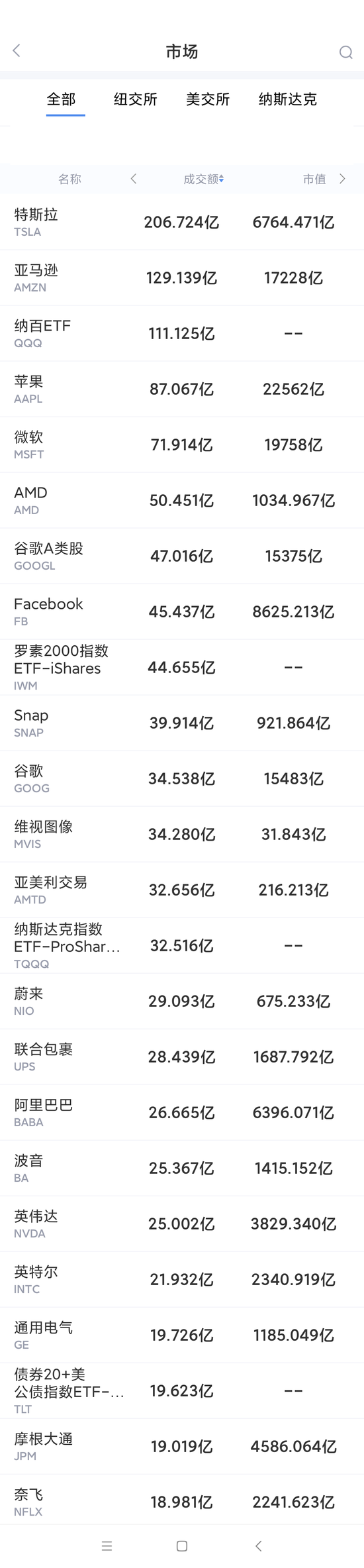 以下为美股当日交易最活跃的20只股票(按成交额):