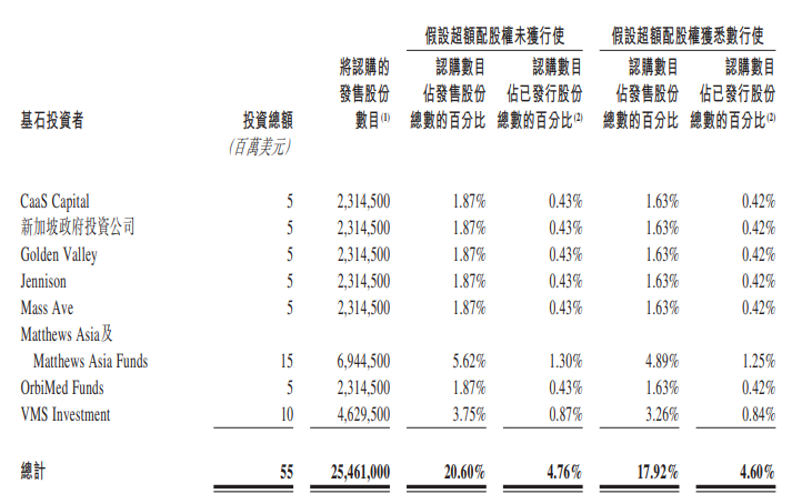 根据基石投资协议,基石投资者已认购2546.1万股发售股份,相当于公司紧随全球发售完成后已发行股份总数约4.76%及全球发售项下发售股份数目的约20.60%,在各情况下均假设超额配股权未获行使。
