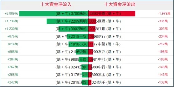好仓(认购证及牛证)方面,周二腾讯、药明、联想相关好仓单日分别录得约2889万、1736万、1230万港元资金净流入;美团相关好仓单日录得约1979万港元资金净流出套现。