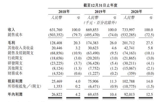 净利润方面,2018年盈利2682.2万元、2019年为6943.5万元、2020年为9201.3万元,对应增速158.9%、32.5%。