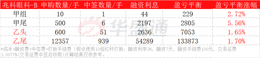 甲尾融资打新500手,利息2197港元,盈亏平衡点5.56%;