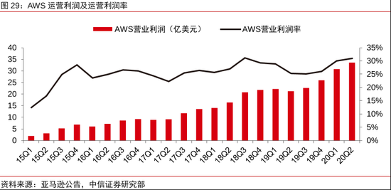 可以看到,AWS营业利润在2015年之后,整体呈现上升趋势。