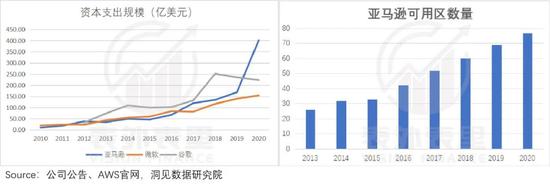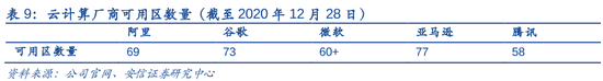 巨大的资本投入,换来云计算业务可用区规模的不断增长。(其他企业未有连续性数据披露,暂时无法体现趋势。)