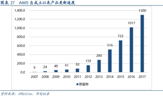 钱到位,效果“立竿见影”,2017年,AWS平台的功能服务已经增长到1300种。
