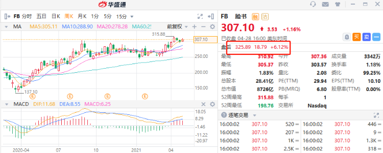 周三美股收盘后,Facebook(FB)公布了2021年一季度财报。因公司营收和利润远超预期,截至发稿,Facebook股价盘后涨超6%。