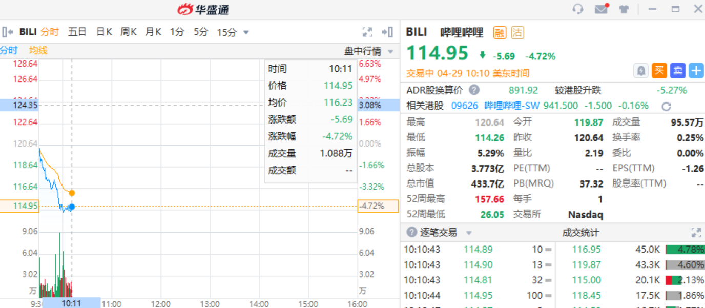 哔哩哔哩跌近5%,据媒体消息,从接近交易方人士处获悉,哔哩哔哩早前确实参与了竞标游族网络控制权,但目前已经退出了收购。
