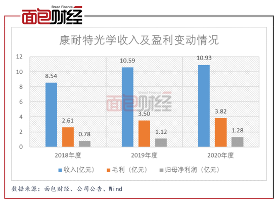 2018年至2020年,康耐特光学的营收持续增长,但2020年增长率有所下降,主要受疫情影响,树脂眼镜镜片市场整体下行。2019年及2020年,公司的营收同比增长率分别为24%和3.21%。