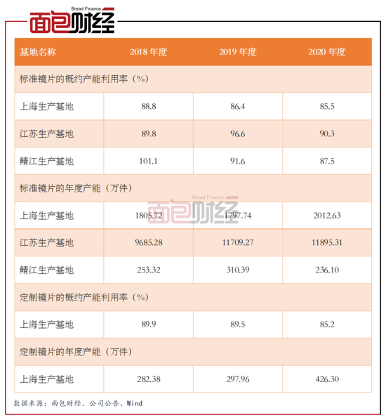 上海生产基地方面,康耐特光学拟先后增加共计440万件的产能,如按计划于2023年完成扩产,届时定制镜片的产能将为2020年末的两倍。江苏生产基地方面,公司拟先后增加共计1920万件的产能。基于公司当前的生产基地尚无法满产,未来扩张的产能或存无法充分利用的风险。