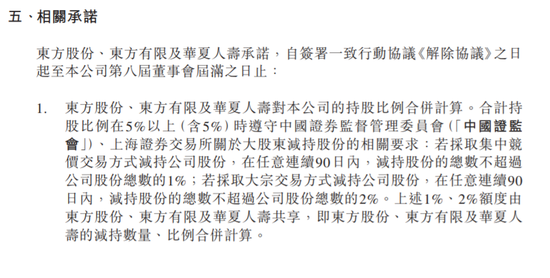 根据东方股份、东方有限和华夏人寿承诺,三家公司在90日内减持股份总数不能超过公司总股份的1%,大宗交易减持不超过公司总股份的2%。