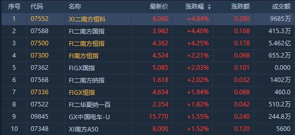 港股市场涨幅前十ETF