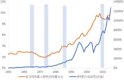 | 图9:1980年后,超级富豪财富占比跟随美国股市起飞 |