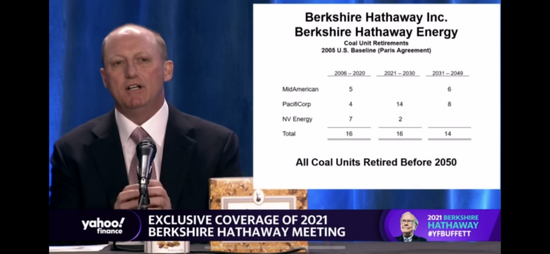 对于ESG,以及相应的环保话题,伯克希尔公司的反应更为详细。首先,公司负责能源投资的副董事长格雷格介绍了公司在不断关闭煤炭发电厂的时间表。基本上每十年关闭大约30%的机组,到2049年关闭所有旗下的煤炭电厂。同时,公司在大规模推进风力发电,太阳能发电,储能电站。从降低碳排放的角度来看,伯克希尔公司已经走在大家的前面。