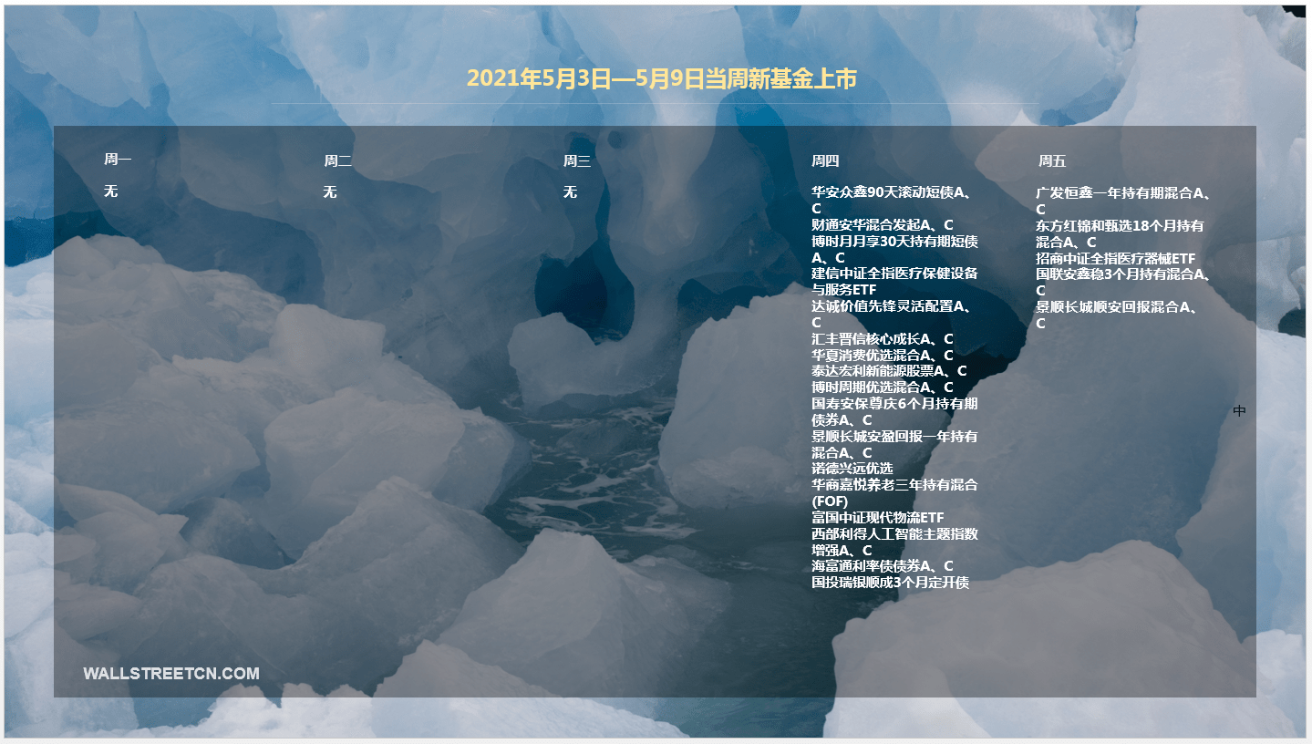 基金发行方面,由于五一假期,下周新基金发行将主要集中在周四周五两个仅有的工作日上,以混合型和股票型为主。