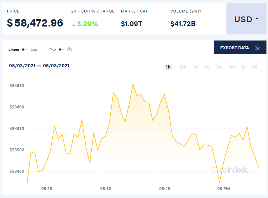 北京时间16:38,比特币站上59000美元/枚,刷新两周高位,日内涨4.18%。