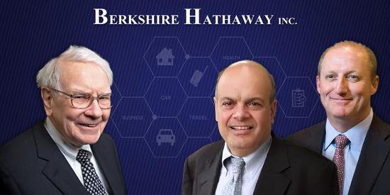 下图为巴菲特和Ajit Jain(中)、Gregory Abel(右)