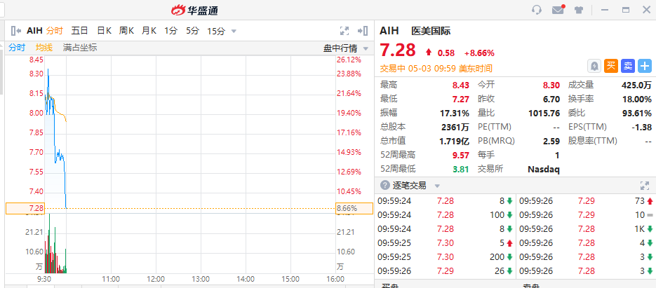 华盛资讯5月3日消息,周一美股开盘,医美股快速上涨。