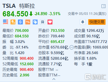 格隆汇5月3日丨特斯拉(TSLA.US)股价快速下跌,现报684.55美元,跌幅3.5%。外媒称,特斯拉德国柏林工厂项目将延期至2022年1月。除了没有工厂的最终建造许可外,原定于7月开始的批量生产计划也已推迟。特斯拉在柏林附近格吕海德新工厂的量产工作已经推迟了六个月,直到2022年1月。