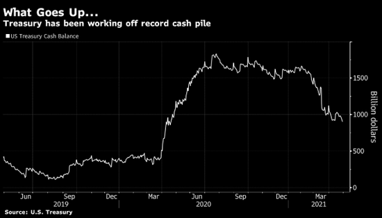 财政部一直在稳步减少创纪录的现金余额,其去年因试图获得应对疫情相关突发支出的灵活性而积累了额外的现金。